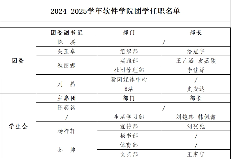 经个人申报、述职答辩、团委考核,确定陈奕铭等16名同学为无码中文 团委2024-2025学年拟选聘人员,现予以公示。如有异议,请于公示期间以书面形式向学院团委反映。