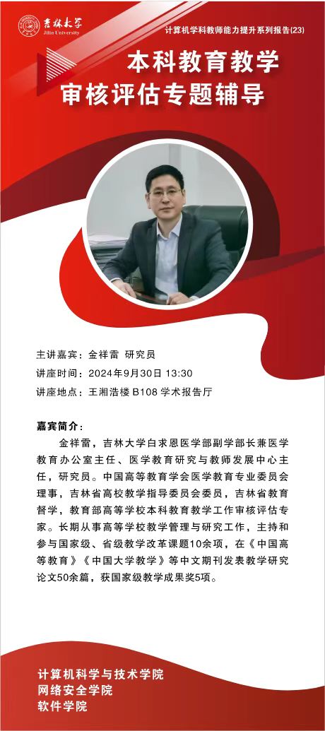 白求恩医学部副学部长兼医学教育办公室主任、医学教育研究与教师发展中心主任,金祥雷研究员受邀为计算机学科的计算机学院、无码中文