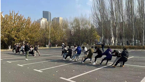 本次趣味运动会包括“迷你铁人三项”、“背对背心连心”、“拔河”、“指点江山”、“乒乓球接力赛”、“足球保龄”六项活动。首先进行的比赛项目是拔河比赛,双方分别是研二和研一的同学,比赛随着裁判清脆的哨声拉开了序幕,最终研二同学的配合略优于研一的同学,赢得了最终的胜利;接着进行了“迷你铁人三项小接力”,这项比赛机考验了学生的个人身体素质,还考验了同学之间的相互配合。随后进行的是背靠背心连心,相较于“迷你铁人三项”,背靠背心连心和指点江山这两个比赛项目就更多的是考验同学们之间的默契配合,随着比赛的进行,选手们相互磨合,逐渐和队友的节奏协调在一起,速度也有了明显的提升。最后进行的是乒乓接力和足球保龄项目。
