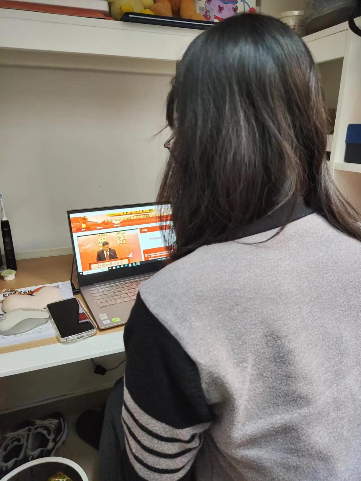 12月4日上午9点,学生代表在王湘浩楼B340集中观看直播,共同参与到“宪法晨读”的活动中。通过观看直播学习宪法知识,每位同学都有不少的感悟,并在彼此之间的交流中进一步加深了对宪法知识的理解。关于制度的深层次解读使同学们进行了一次知识上的升华,面向学生群体的基本法律知识讲解也让宪法真正走进了校园。其他同学以观看视频的形式学习宪法,经过本次学习,同学们理解了坚持依法治国首先要坚持依宪治国,坚持依法执政首先要坚持依宪执政。