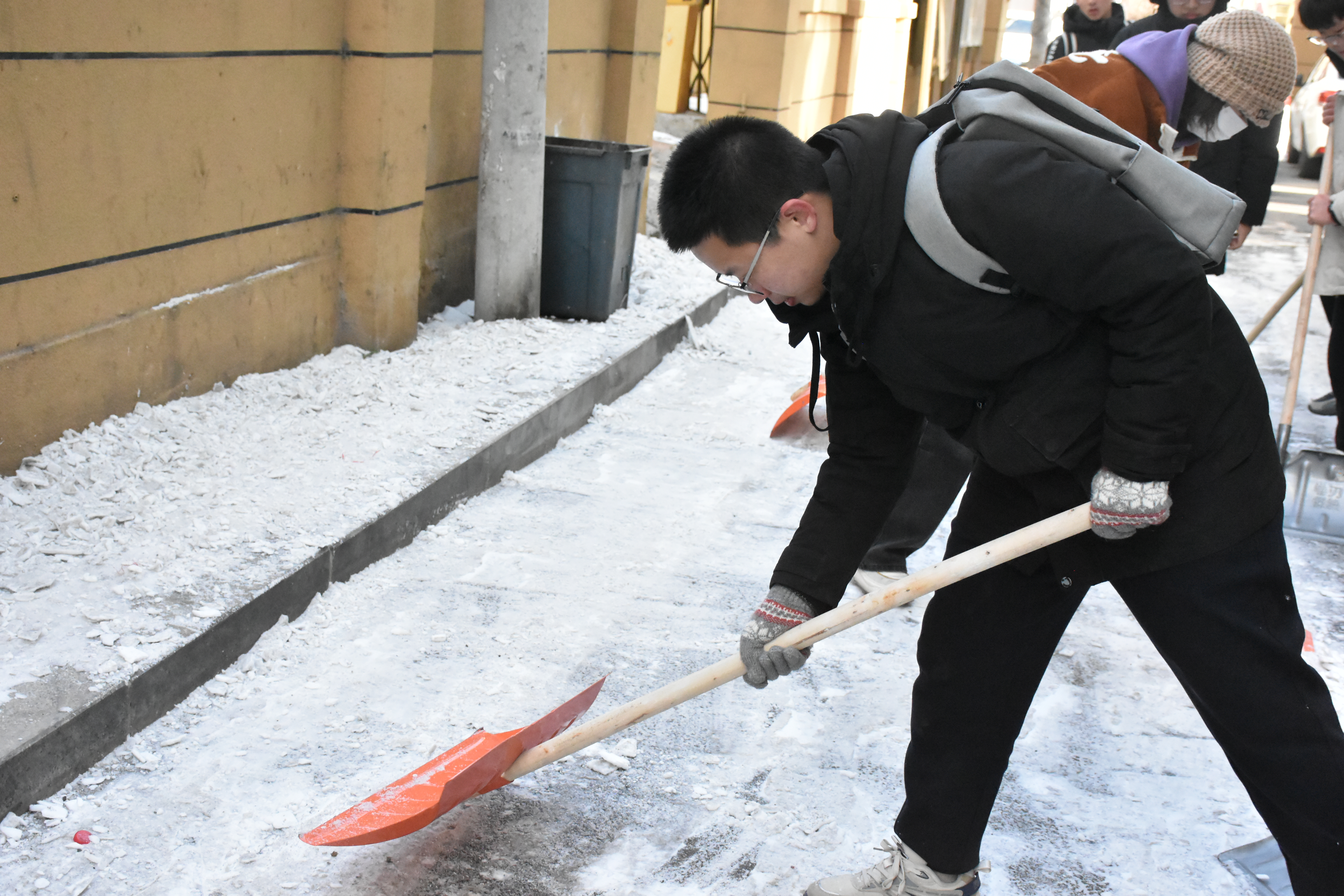 的同学们早早地来到了昌平社区,他们携带了铲冰工具,准备为社区的道路和公共场所清除冰雪。在简单的分工之后,大家迅速投入到铲冰工作中。同学们发挥团队协作精神,有的负责铲冰,有的负责清扫,有的负责搬运冰雪,大家齐心协力,共同为社区的出行安全贡献力量。
