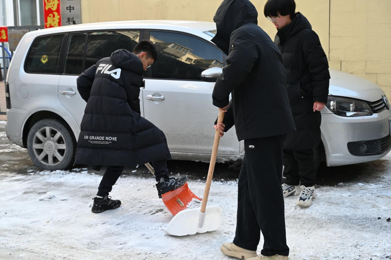 活动当天,志愿者们首先对社区内的主干道、人行道进行了细致的调研,向社区工作人员详细了解积雪的情况和居民的需求,随后志愿者们迅速行动起来,分工合作,有条不紊的开始铲雪除冰作业。在了解到社区内老年人较多后,考虑到居民的出行安全,志愿者们着重对社区内健身设施周围、各单元楼门口、停车场、敬老院周边区域的残留冰雪进行清理,确保居民出行的安全与顺畅。尽管积雪较厚,路面难行,但同学们满怀活力,努力做到“扫过即净,不留余冰”,收获了社区居民及工作人员的广泛认可和赞誉,充分展现了无码中文