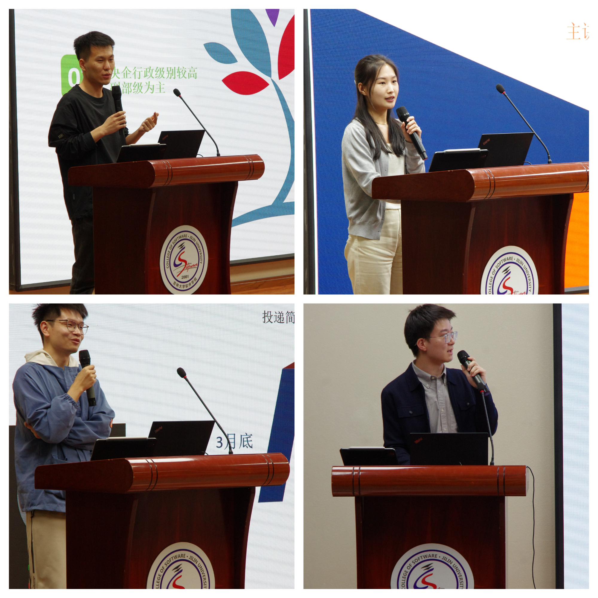 研究生会携手计算机科学与技术学院研究生会于4月13日在王湘浩楼B108学术报告厅举办“就业榜样说——银行国企篇”就业经验分享会。本场活动邀请2021级研究生郭泽洋、谷殿月、胡彪、席文博、杨榕彬作为分享嘉宾