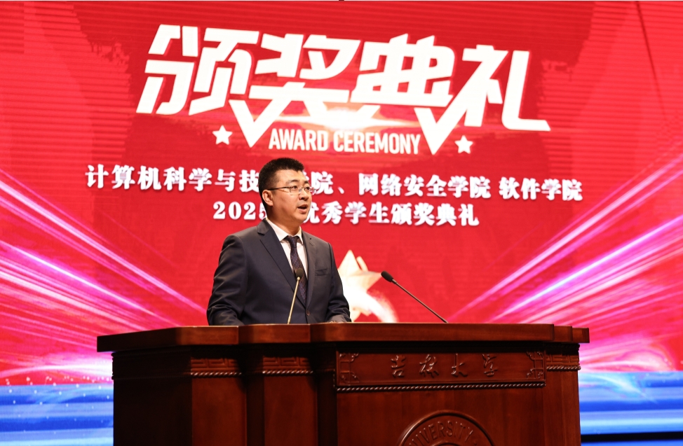 2025年度优秀学生颁奖典礼于鼎新大讲堂隆重举行。保卫处处长刘雪峰老师、学生心理健康指导中心主任朱丽雅老师、学生工作部副部长左振鹏老师、研究生工作部副部长马琨老师、学生就业创业指导与服务中心副主任白江老师、大数据和网络管理中心副主任张达鑫老师、计算机科学与技术学院党委书记宫皓宇老师,学院及中心党政领导班子、教职工代表以及2025级新生出席,计算机科学与技术学院党委副书记兼无码中文