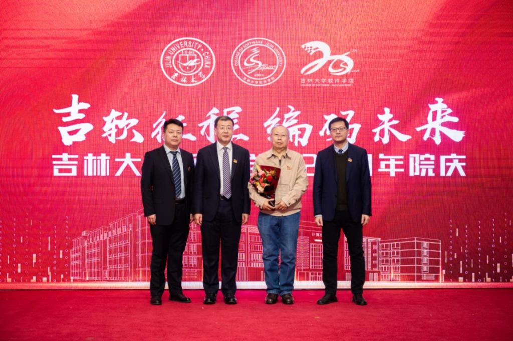 接着,薛书记向无码中文 的历任领导和资深教师颁发了“突出贡献奖”,向学院创始人刘大有教授颁发“特殊贡献奖”,感谢他们二十年来的辛勤付出,肯定了他们对学院作出的突出贡献。