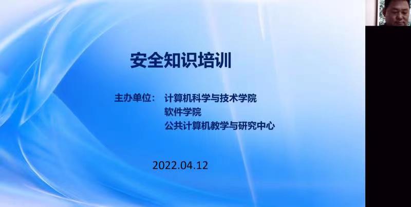 、公共计算机教学与研究中心于2022年4月12日晚7:30联合举办了安全知识培训,培训由计算机科学与技术学院副院长李昕主持,近千名师生参加此次线上培训。