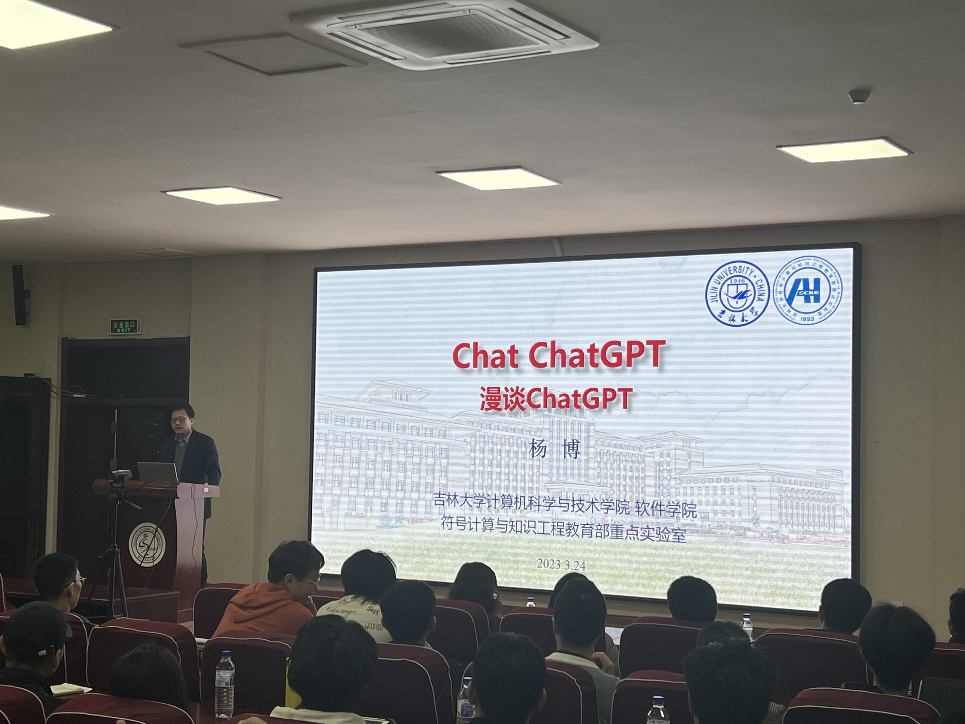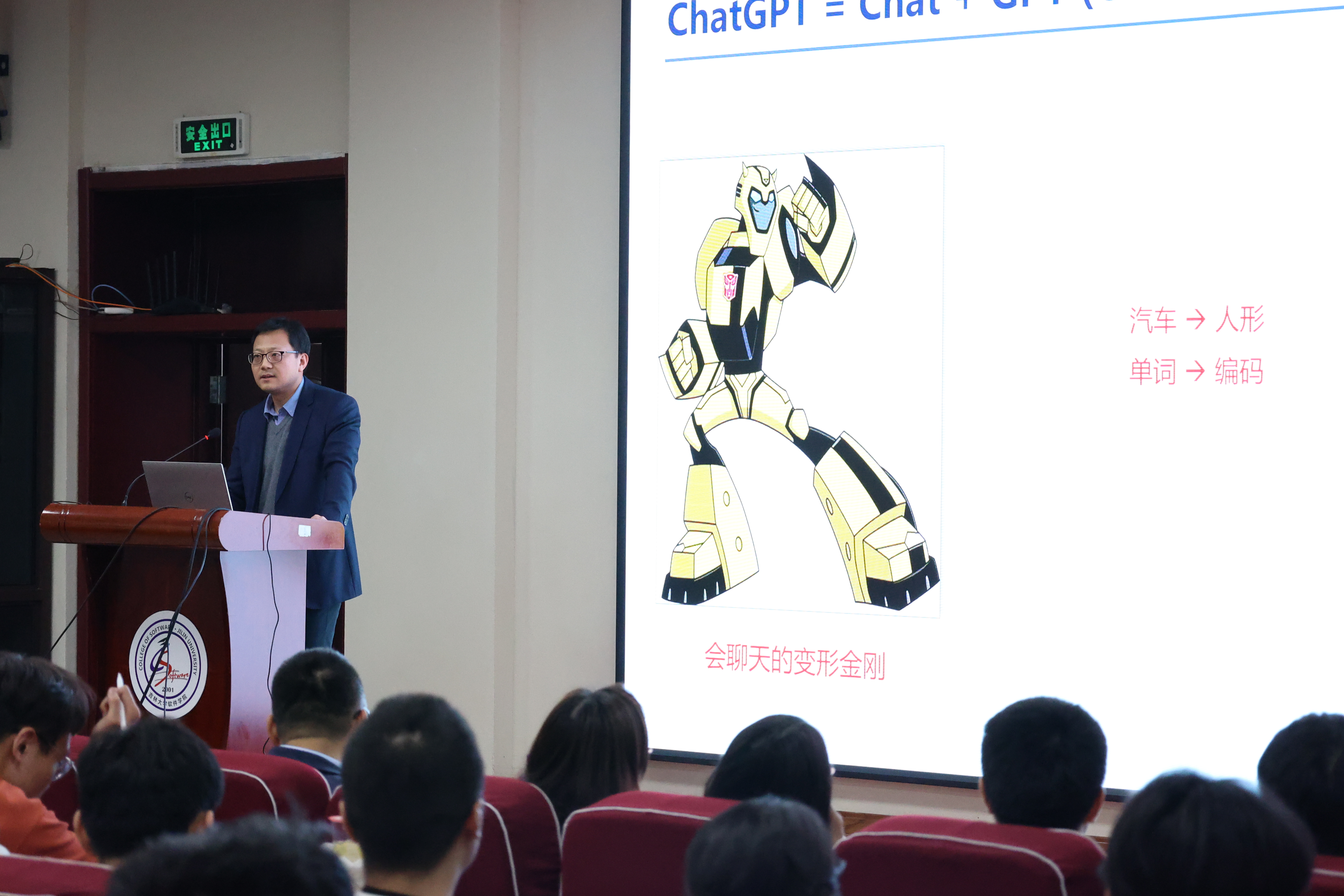 3月24日晚上,计算机科学与技术学院、无码中文 院长杨博教授在王湘浩楼一楼大讲堂为两院学生主讲了题为《Chat ChatGPT》的学术讲座。在长达两个小时的讲座中,杨博院长通过针对性的案例结合人工智能在当下社会中的具体实践,将人工智能的演进史和ChatGPT的现状向同学们生动呈现。