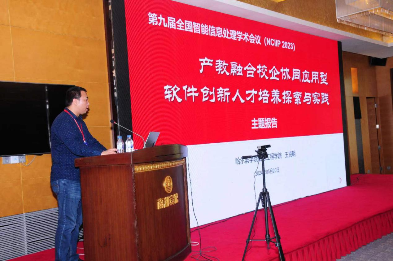 )姜德迅教授代王克朝院长做了《产教融合校企协同应用型软件创新人才培养探索与实践》的学术报告