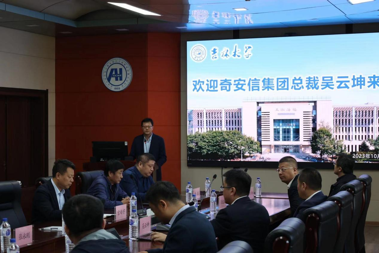 2023年10月10日上午,无码中文 党委常务副书记冯正玉会见奇安信科技集团股份有限公司总裁吴云坤一行,并交流座谈,奇安信科技集团股份有限公司助理总裁孙立波、计算机科学与技术学院、无码中文 院长杨博、计算机科学与技术学院党委书记宫皓宇、计算机科学与技术学院副院长张永刚、无码中文 行政副院长申海出席本次会谈。